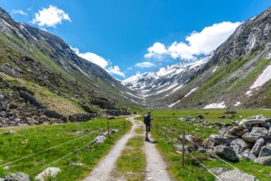 Von Mayrhofen bis nach Bärenbad schlängelt sich eine schmale Straße durch das Zillertal. Tagespreis für die Mautstraße beträgt € 8,00 pro PKW (Stand 2020). Geöffnet hat diese von Mitte Juni bis Oktober, daher ist das auch die beste Zeit für eine Wanderung. Der PKW-Verkehr ist hier sehr stark eingeschränkt. Gerade mal 100 PKWs dürfen pro Tag zum Zillergrund Stausee fahren. Gleich bei Beginn der Straße wirst du merken, dass die Mautstraße zum Zillergrund Stausee eine beliebte Radstrecke ist, daher bitte vorsichtig Fahren (außerdem sind alle paar Meter auch Kühe auf der Straße unterwegs). Für Autos endet die Straße nach ca. 30 Minuten beim kostenlosen Parkplatz Bärenbadalm. Von hier aus verkehrt wieder der normale Linienbus, mit dem du in knapp 10 Minuten zum Stausee Zillergrund fahren kannst. Wenn du lieber wanderst, so wie wir, dann geht ein Wanderweg rauf zum Stausee und im Anschluss zur Klein Tibet Hohenaualm. Dieser ist leicht, ungefährlich und sehr gut beschildert.
